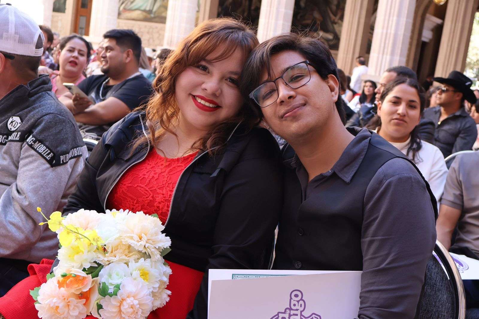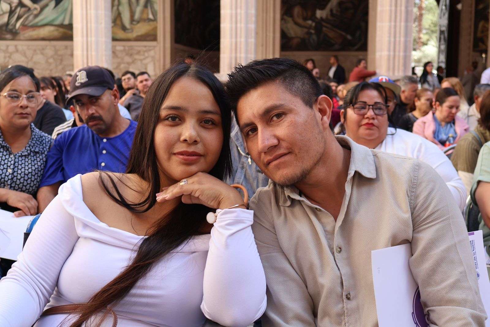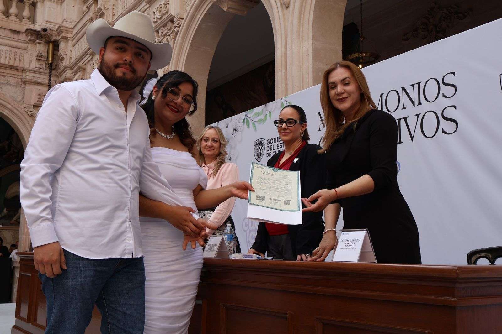 Chihuahua, Chih.- En ceremonia efectuada en el Patio Central de Palacio de Gobierno, 150 parejas se dieron “el sí” en el marco del programa de Matrimonios Colectivos, que este año superó la meta registrada en 2025.