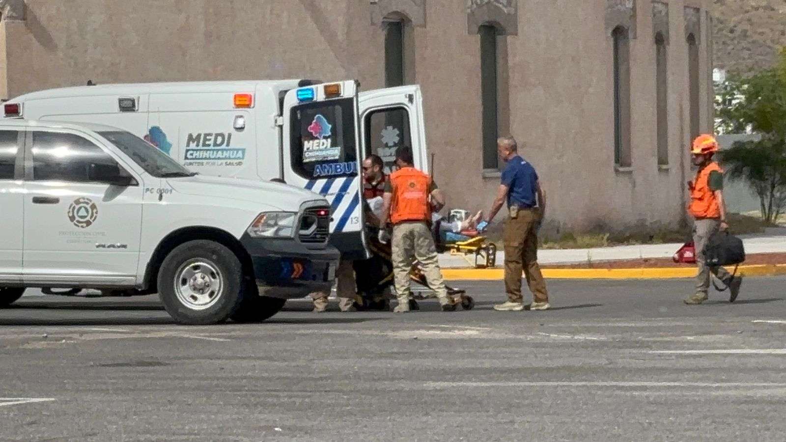 El helicóptero de la Secretaría de Seguridad Pública Estatal (SSPE) trasladó a la mujer y aterrizó en el estacionamiento de Expo Chihuahua, donde ya la esperaban una unidad de URGE y personal de Protección Civil del Estado para completar el operativo.