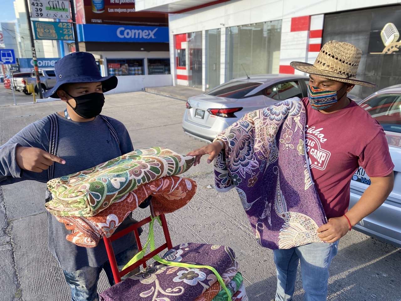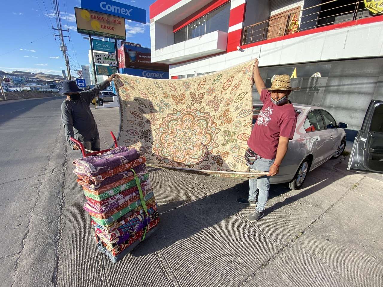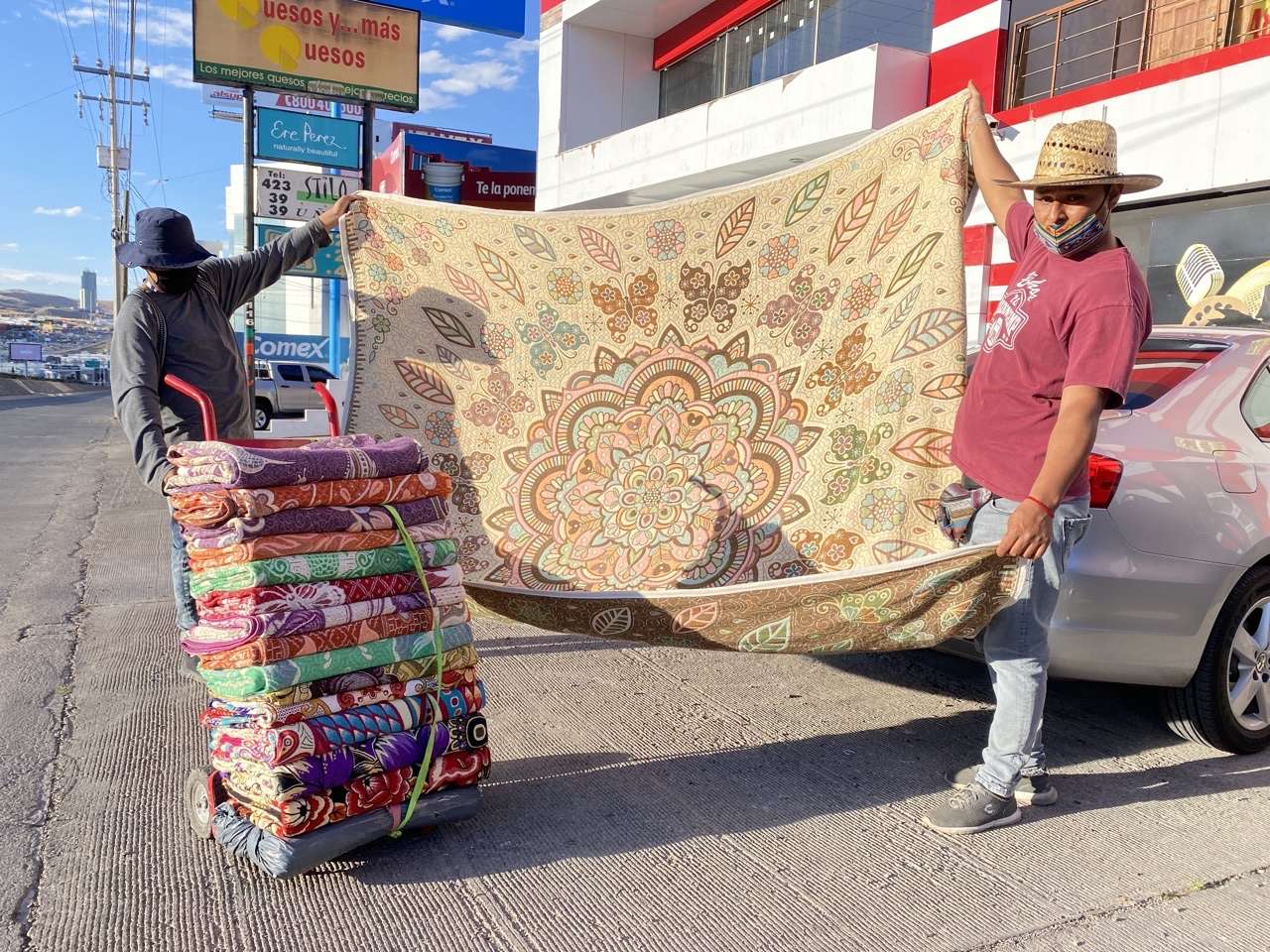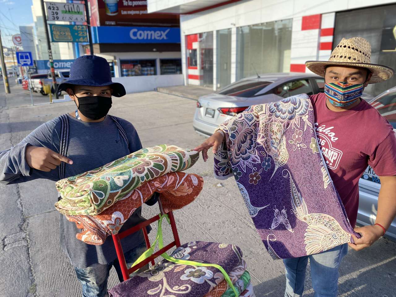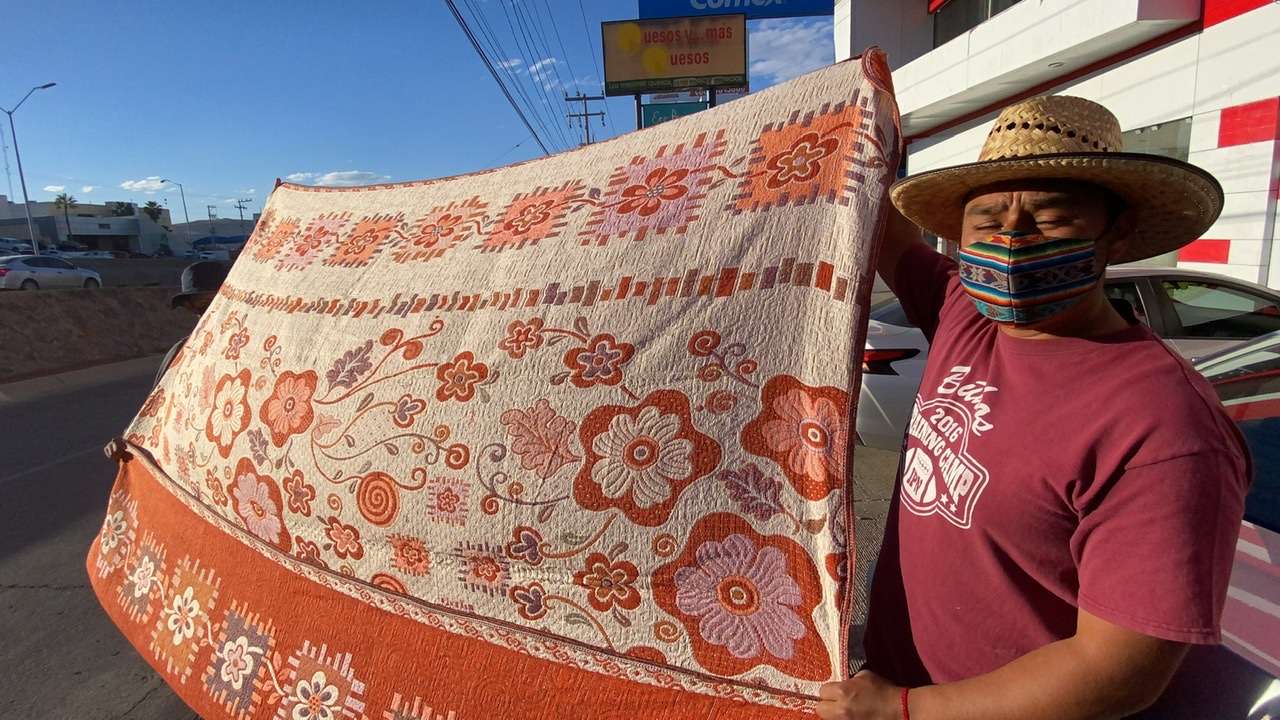 Entre sus productos que ofrecen en las calles, cargando sus cobijas en un diablito, el jóven Francisco Hernández explicó que a diferencia de una cobija que se vende en una tienda comercial, las suyas son verdaderas obras de arte.
