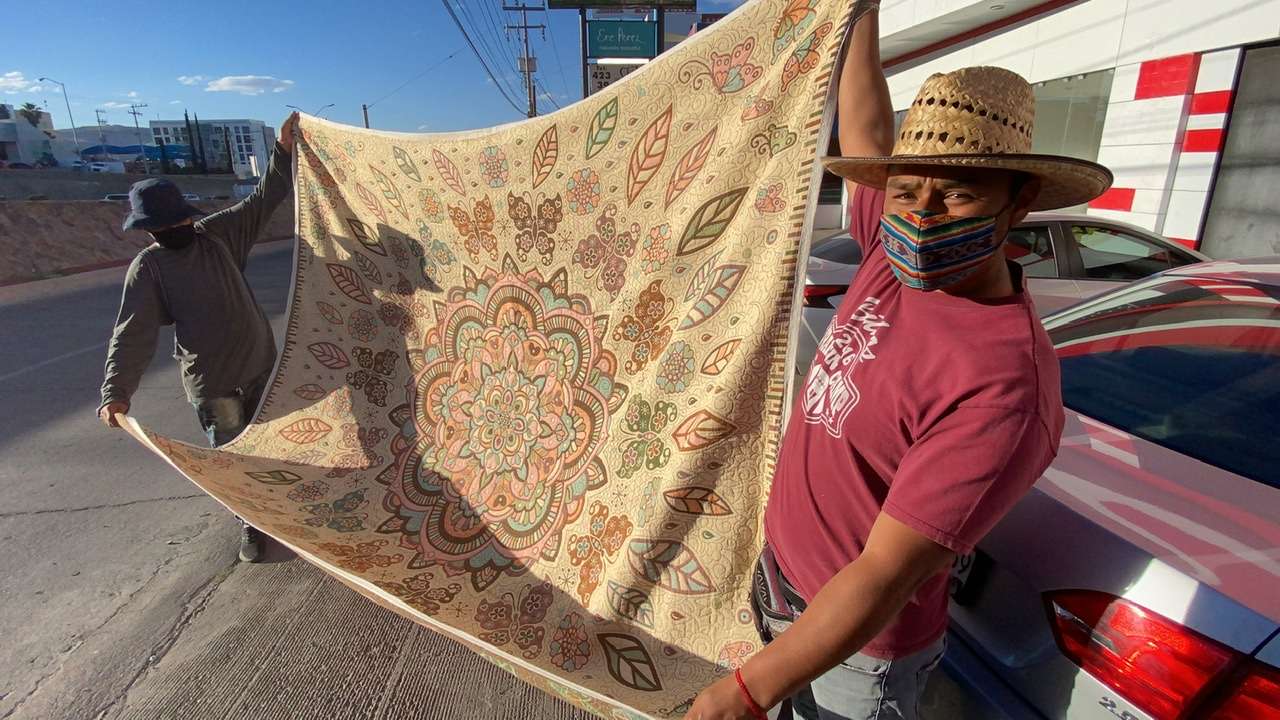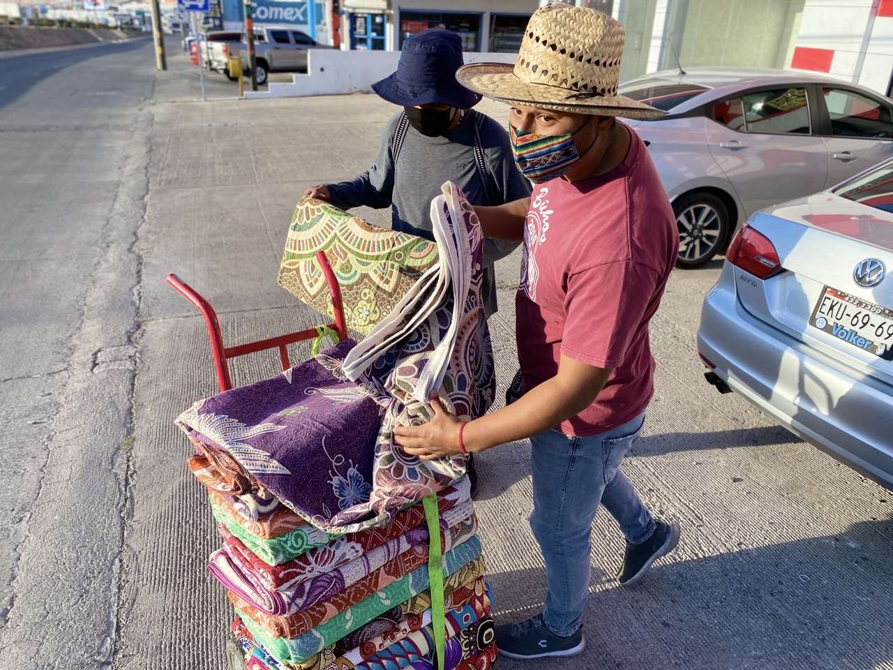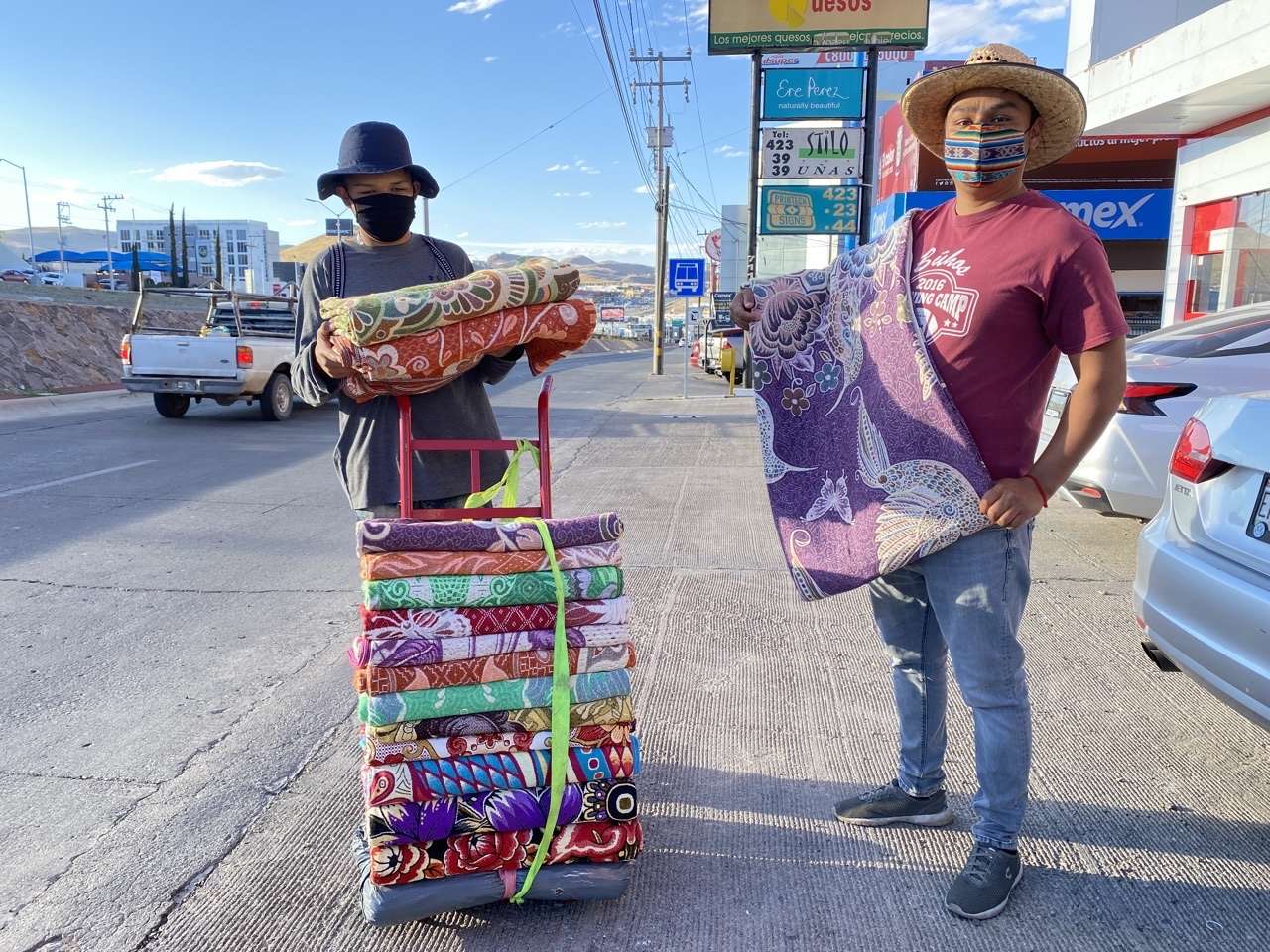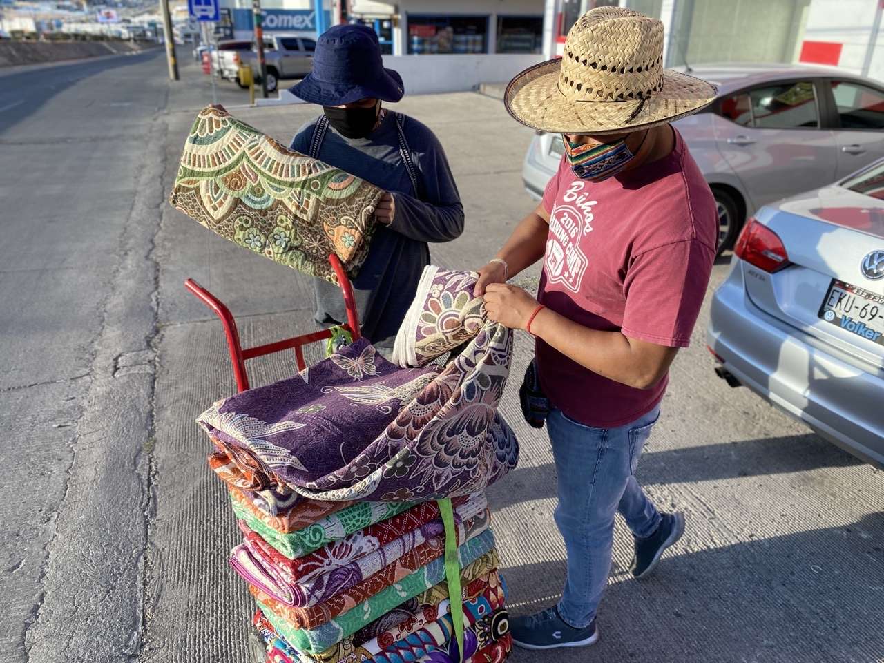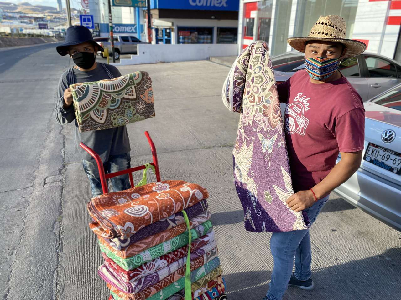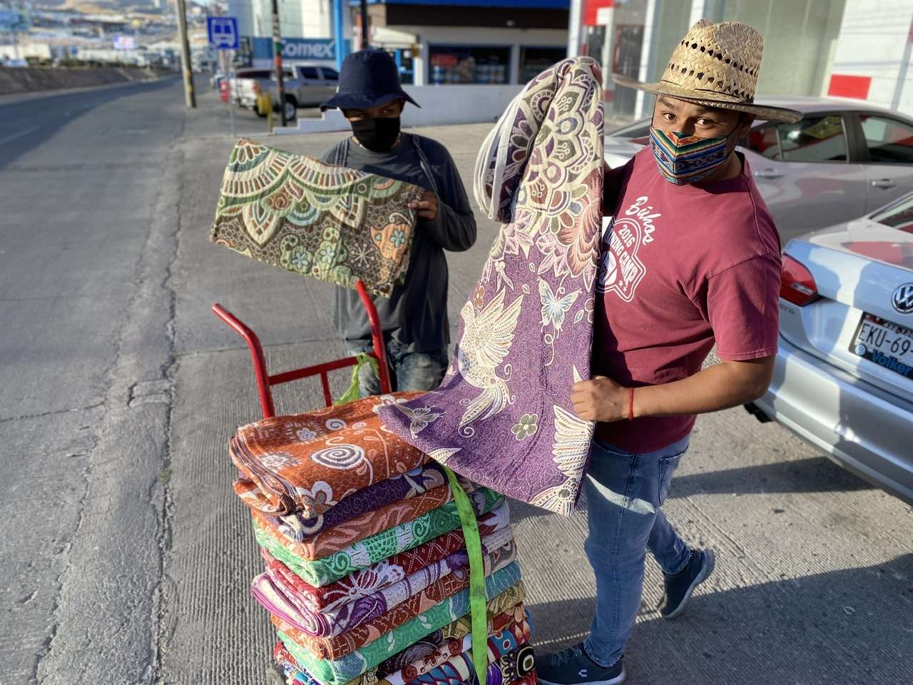 Entre sus productos que ofrecen en las calles, cargando sus cobijas en un diablito, el jóven Francisco Hernández explicó que a diferencia de una cobija que se vende en una tienda comercial, las suyas son verdaderas obras de arte.