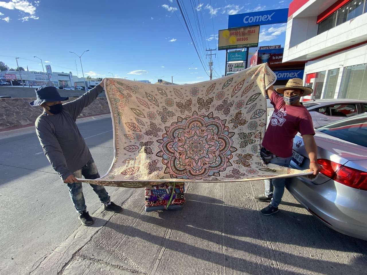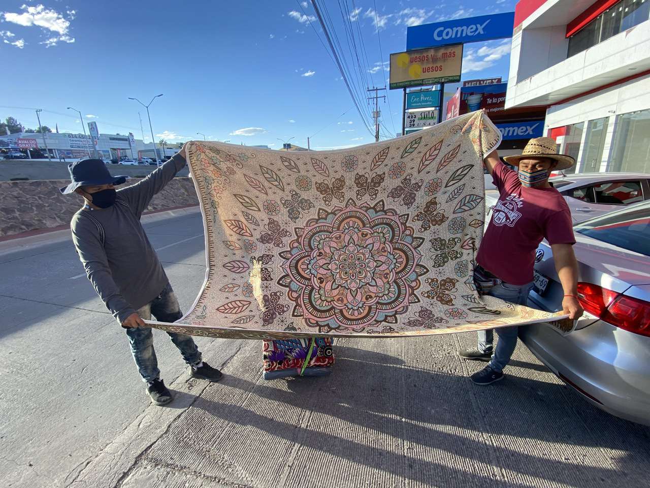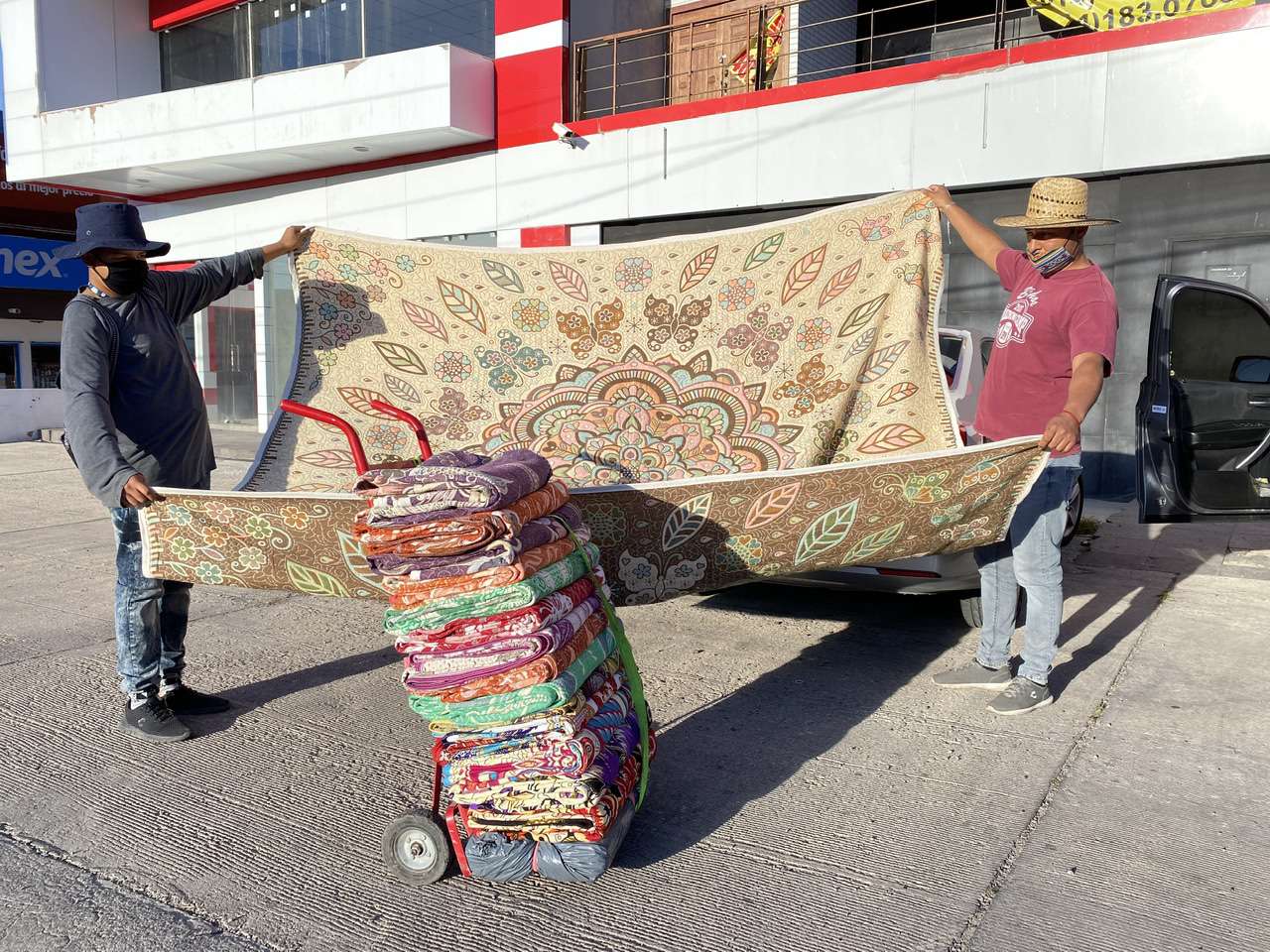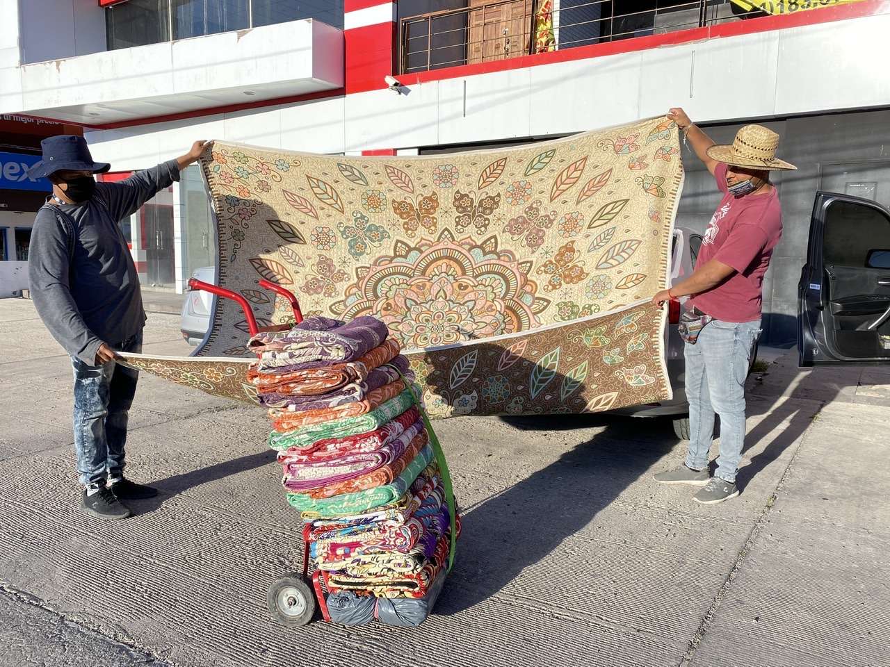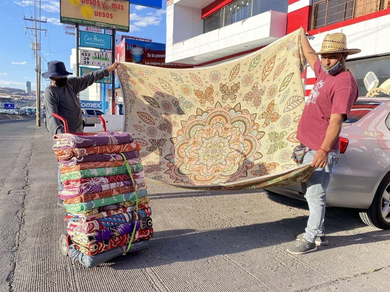 Entre sus productos que ofrecen en las calles, cargando sus cobijas en un diablito, el jóven Francisco Hernández explicó que a diferencia de una cobija que se vende en una tienda comercial, las suyas son verdaderas obras de arte.