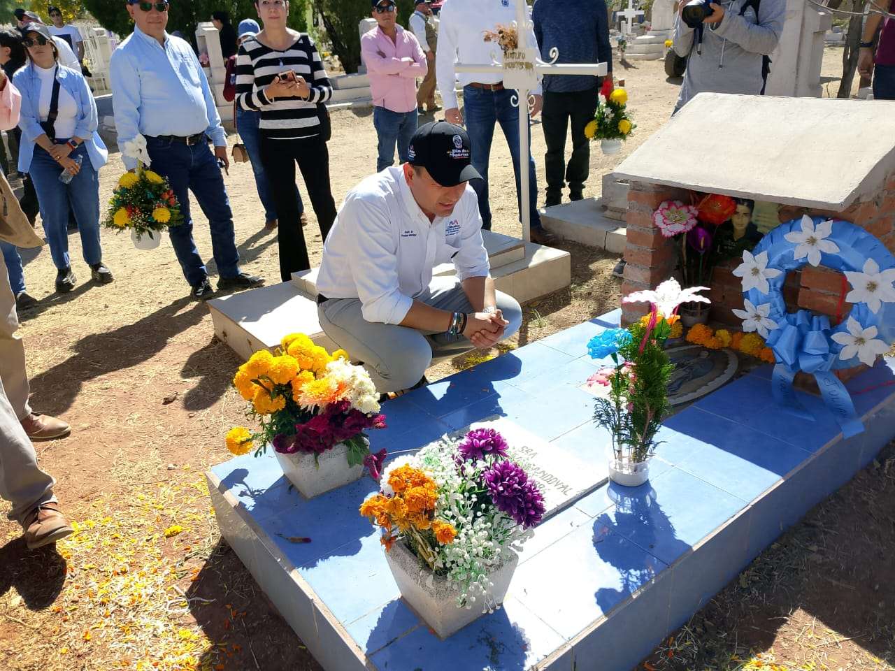 El edil caminó por los camposantos desde temprana hora, saludó a comerciantes y visitantes, y observó las labores de limpieza, seguridad y asistencia implementadas por el municipio para estas fechas. Al llegar al antiguo panteón de la ciudad, tomó unos minutos para visitar la cripta donde se encuentran miembros de su familia.