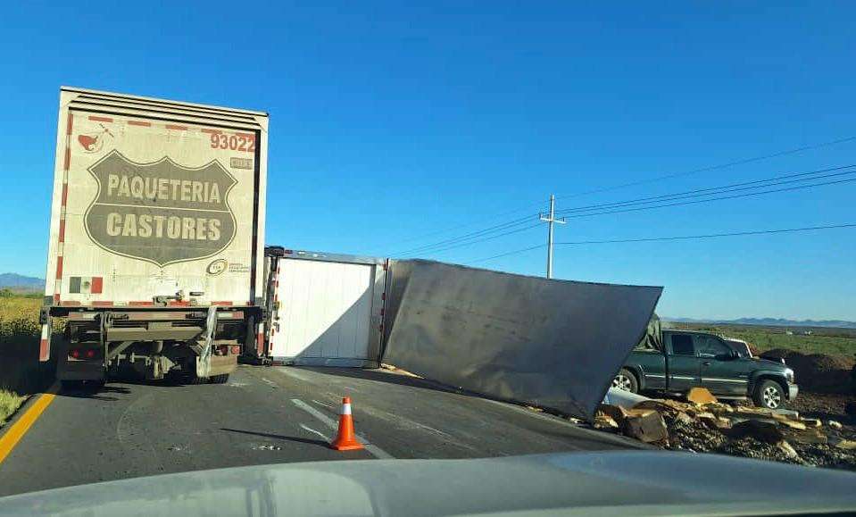 Chihuahua.- Un accidente vehicular se registró esta mañana en el kilómetro 33 de la carretera a Ciudad Juárez, donde un camión de carga que transportaba cajas de huevo volcó.