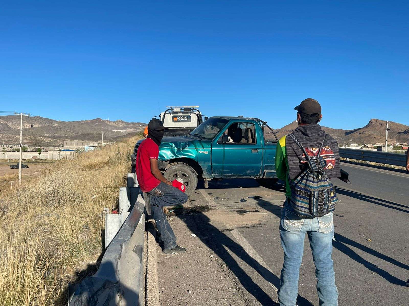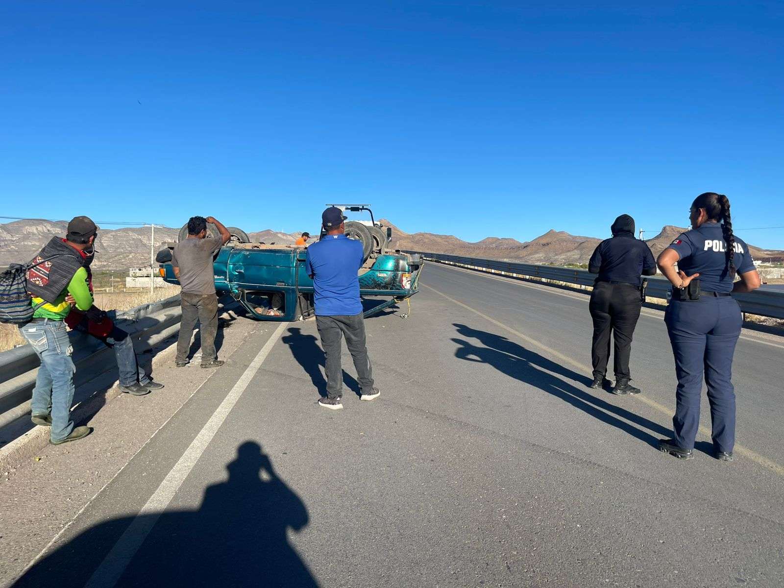 Chihuahua, Chih.- El conductor de una camioneta pick up Ford Ranger protagonizó una aparatosa volcadura la tarde de este jueves en la carretera que conduce al CERESO número 1, justo a la altura del puente que cruza el Libramiento Oriente.