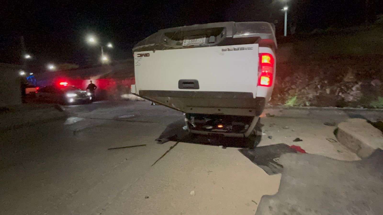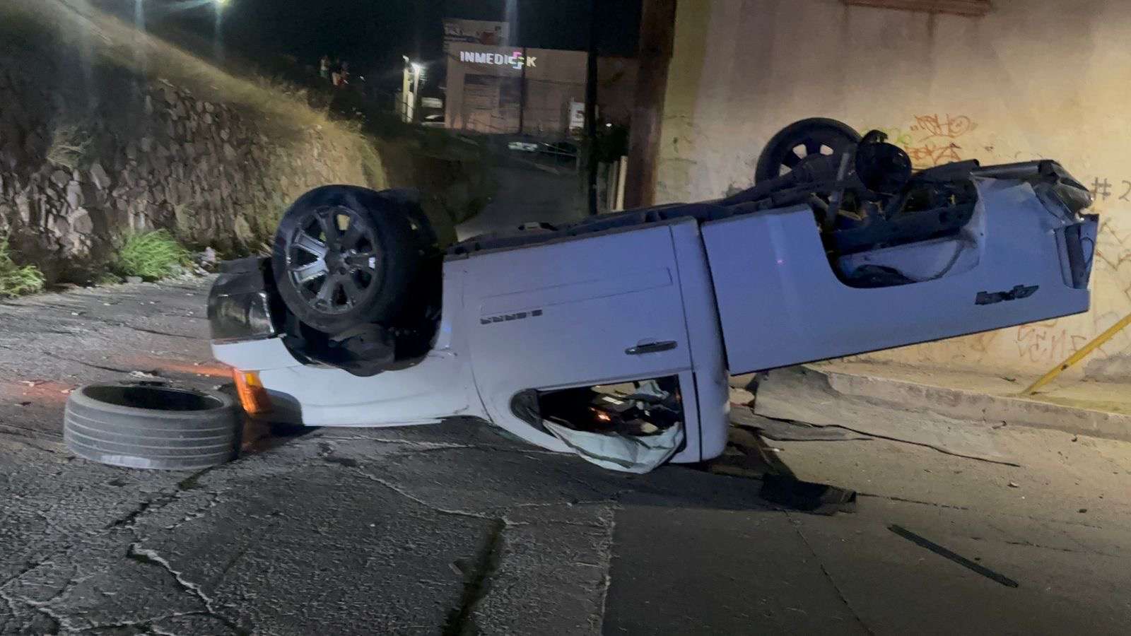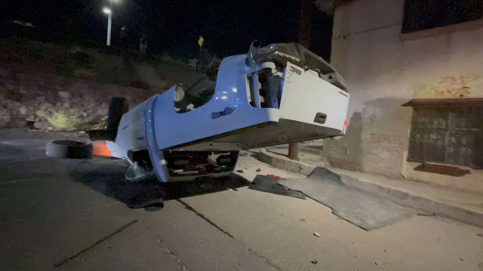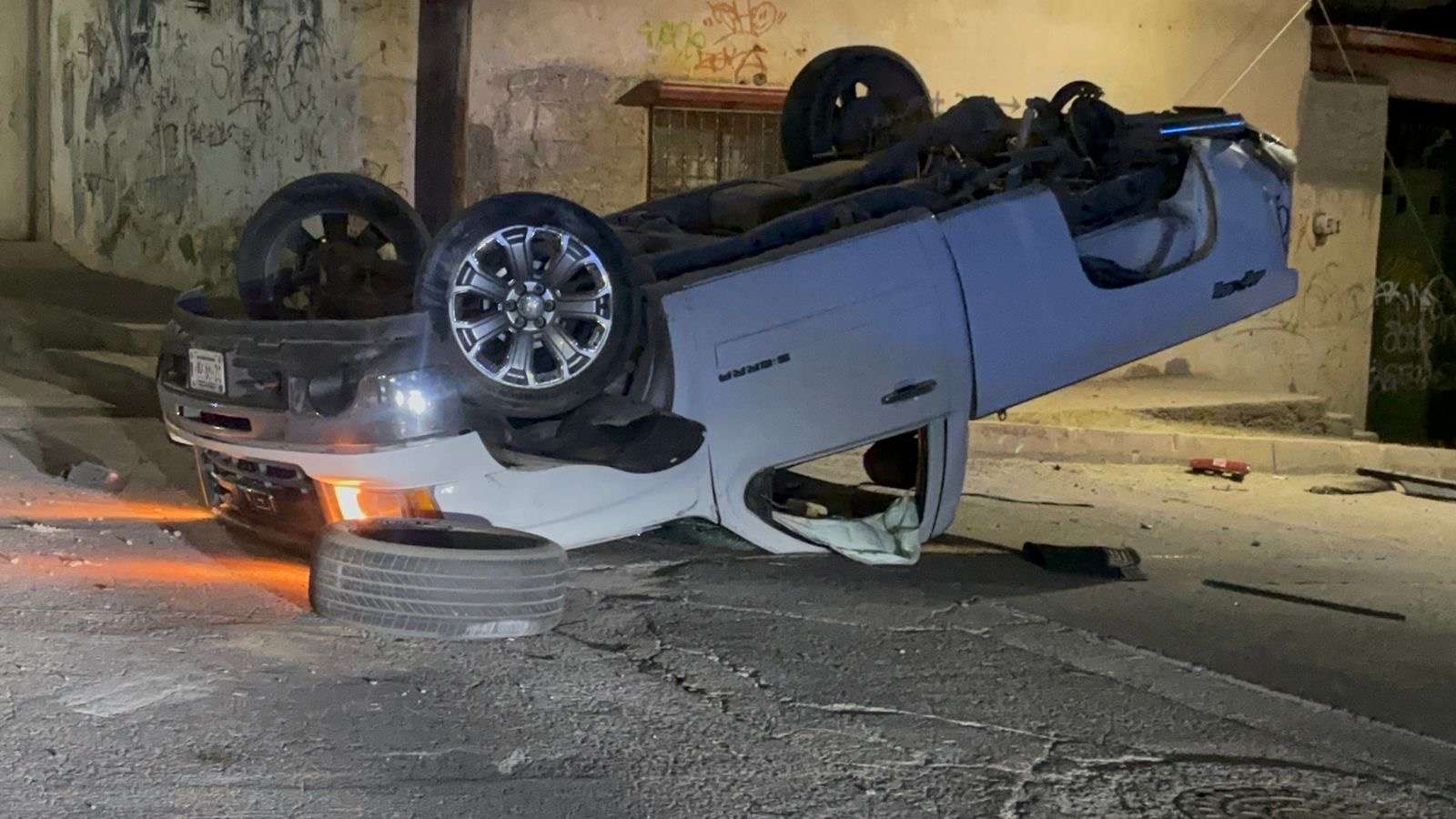 Chihuahua.- Un conductor que circulaba de sur a norte en una pick up Sierra, perdió el control y volcó en la lateral de la avenida Pacheco y Hermanos Ruiz.