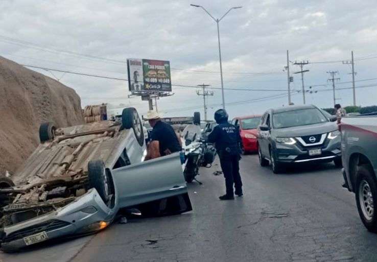 Chihuahua, Chih. — Un aparatoso accidente vial que involucró a cinco vehículos, de los cuales dos terminaron volcados, se registró la tarde de este miércoles sobre el Periférico de la Juventud, a la altura del Instituto José David.