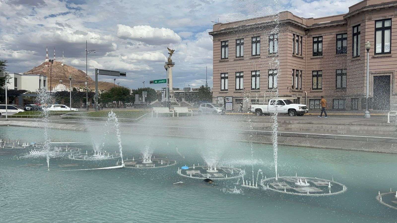 Chihuahua.- Las Fuentes Danzarinas volvieron a la vida esta tarde de viernes, captando de inmediato la atención de los chihuahuenses que paseaban por el Centro Histórico.