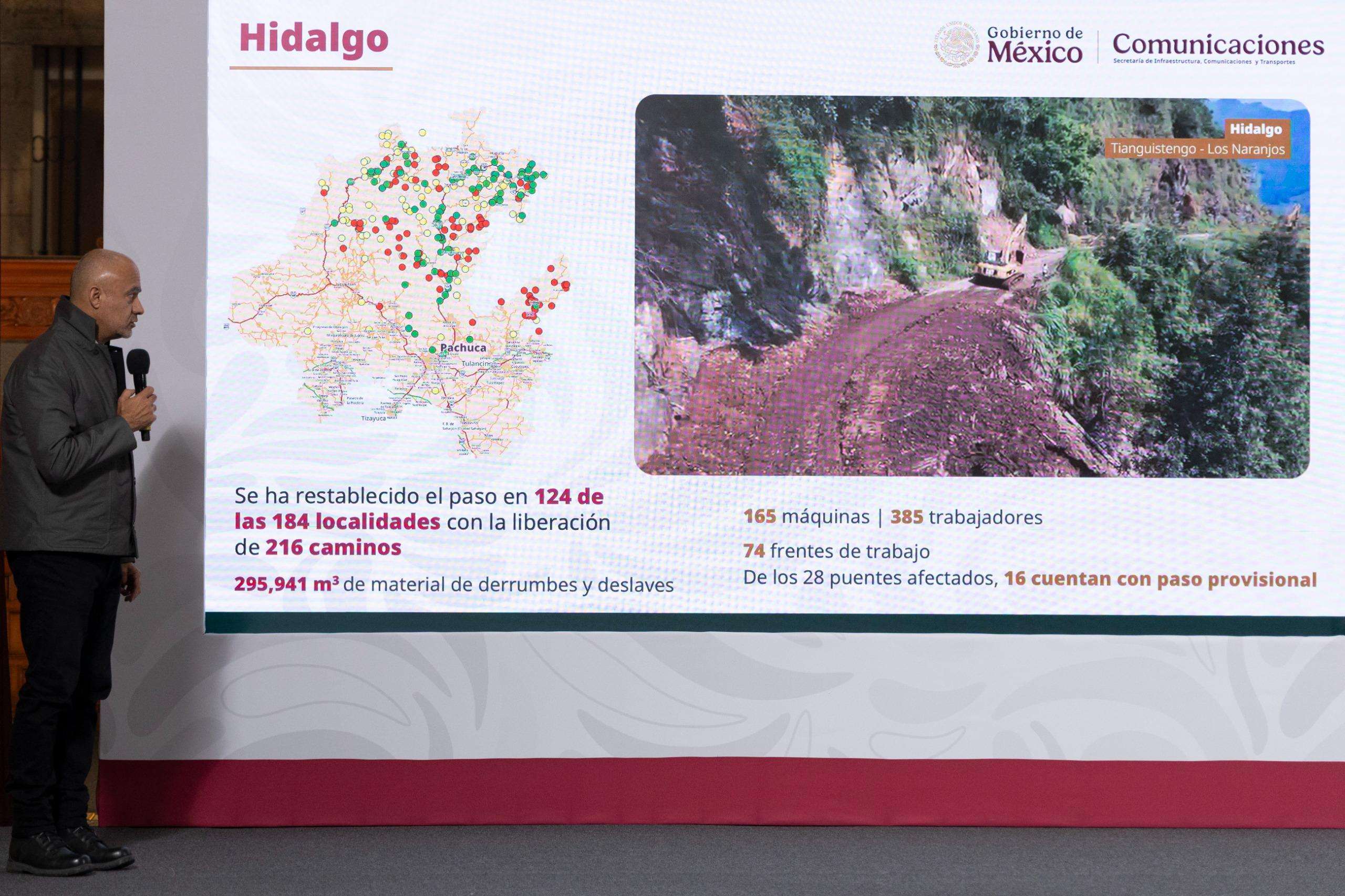 El secretario de Infraestructura, Comunicaciones y Transportes, Jesús Antonio Esteva Medina, detalló que hay 17 mil 684 elementos de la SICT, de las Secretarías de Defensa y de Marina, así como de los gobiernos estatales, que trabajan con mil 210 máquinas para la liberación de caminos y en labores de limpieza.
