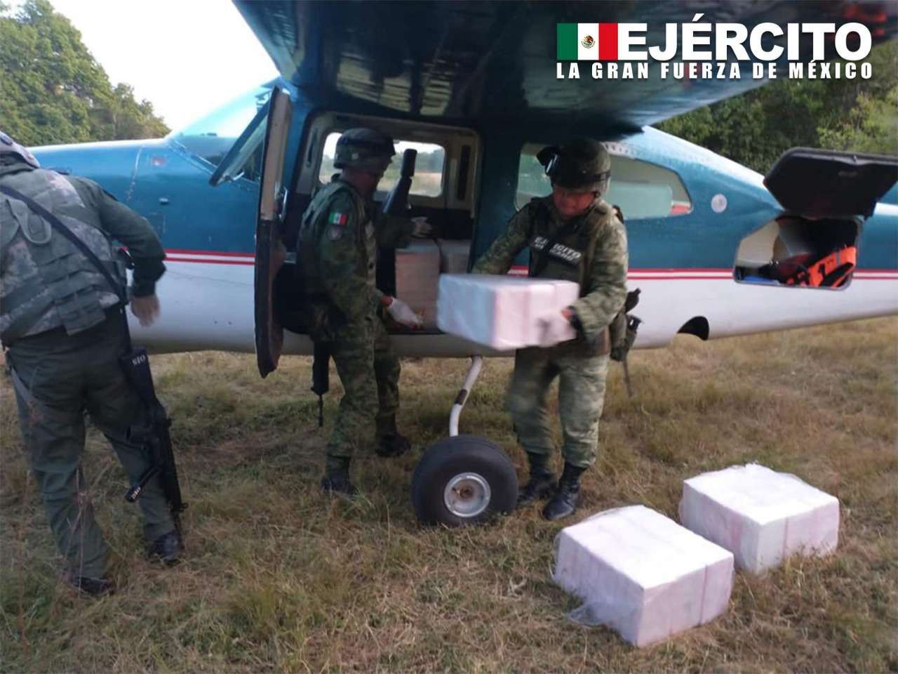 “Ejército y Fuerza Aérea Mexicanos aseguran aeronave con 400 kilogramos de cocaína en Oaxaca”, dice el breve informe que se publicó esta mañana en las redes sociales.