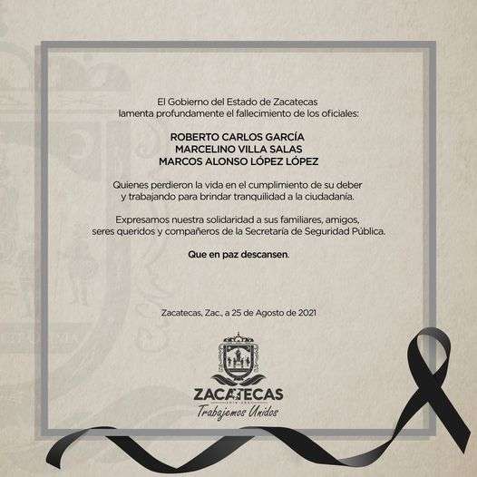 La Secretaría de Seguridad Pública estatal confirmó que "tras esta cobarde agresión, tres efectivos perdieron la vida, mientras que dos más resultaron lesionados, mismos que fueron trasladados a recibir atención médica".