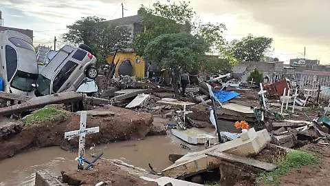 Son el rezago del paso de Priscilla -hoy tormenta tropical que llegó a ser un huracán de categoría 2- y de la depresión tropical Raymond que continúa su desplazamiento por el océano Pacífico en paralelo a las costas mexicanas. Podría entrar a tierra ya degradada, dejando más lluvias esta madrugada en Baja California Sur y Sinaloa. “Una vez que se atienda la emergencia, iniciarán los censos para el apoyo a la población”, ha declarado Sheinbaum. La mandataria, que ha difundido mensajes durante todo el sábado sobre la situación nacional con fotos en donde aparece con abrigo y sentada a la mesa -o por Zoom- con autoridades estatales y mandos uniformados, ha prometido además que dará “apoyo a todas las personas que perdieron un familiar” y que “a la población damnificada no le faltará nada”.