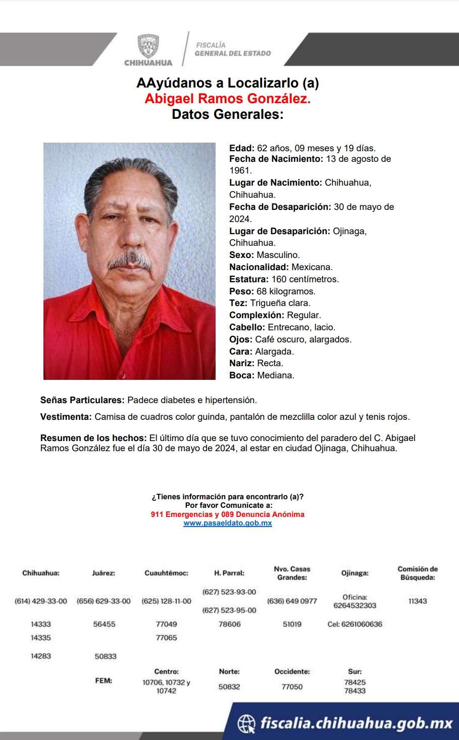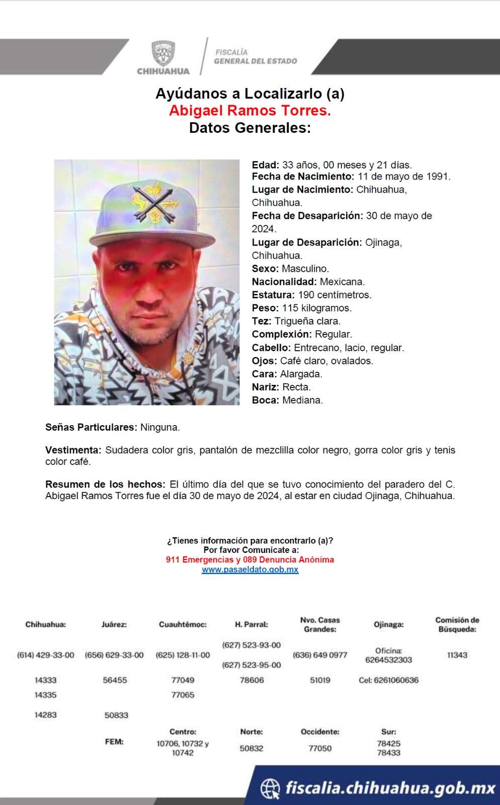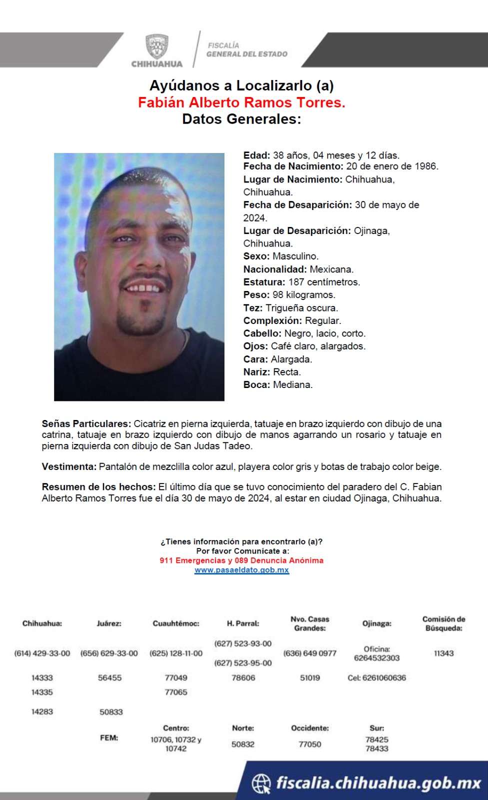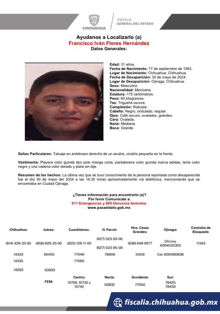 Chihuahua. –Francisco Iván Flores Hernández, de 31 años de edad, es el quinto conductor de plataformas digitales que fue reportado desaparecido, tras hacer un viaje ayer de Chihuahua a Ojinaga.