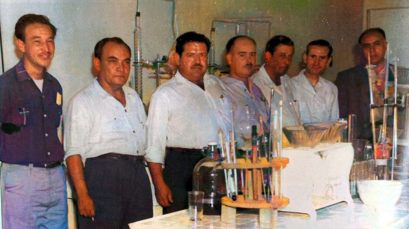 En relación a lo mismo, a la pisteadera,en la otra fotografía, de 1961,esta de los Cornejo Murga para usted, vemos el laboratorio de Bodegas de Delicias, donde se le daba el toque ideal al Brandy Dorado y a otras etiquetas contra la desesperanza y demás avatares de la vida ingrata.