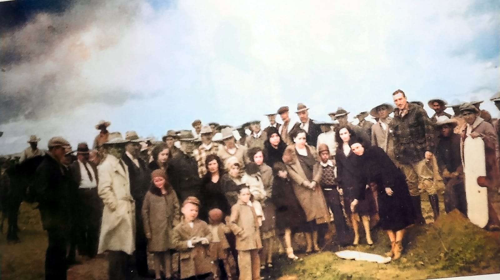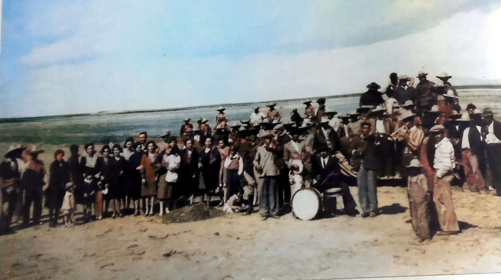 En la foto, coleccionada por la familia Cano Blake,vemos a hombres, mujeres y niños bien elegantes, algunos señores hasta de abrigo, corbata y sombreros de postín, las damas de tacón alto y peinado fifí, niñas y niños igual de curros.