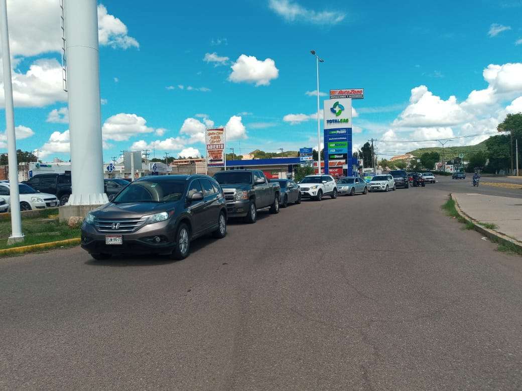 Una larga fila de ciudadanos acudieron al lugar ubicado en el estacionamiento de Sams para esperar la venta de sus productos, además de una fila considerable de vehículos que esperaron la apertura del servicio al auto.