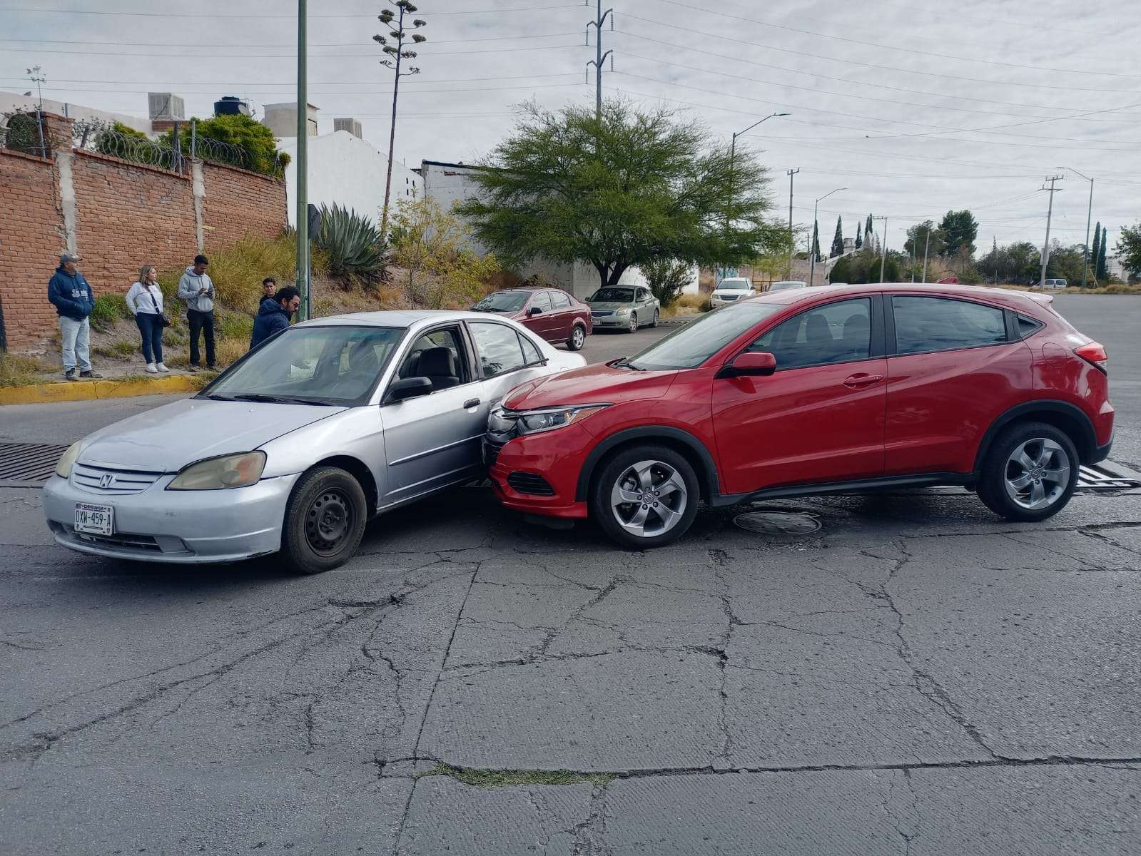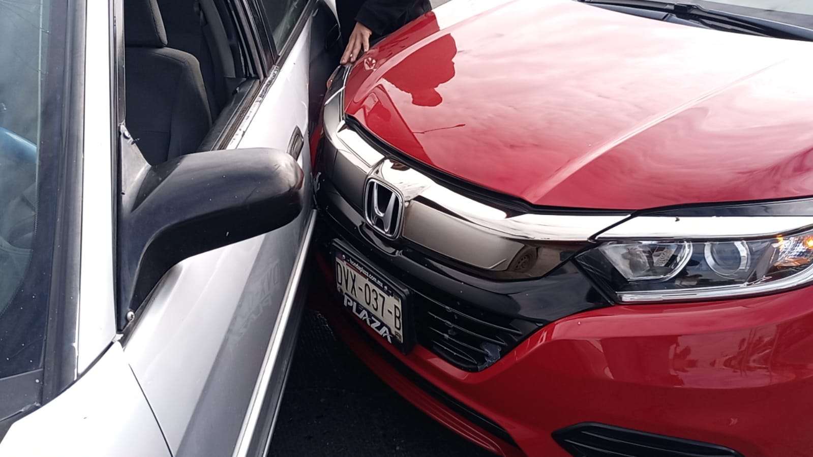 El accidente ocurrió entre un vehículo Honda Civic color gris modelo atrasado y una camioneta Honda HR-V color roja de reciente modelo.