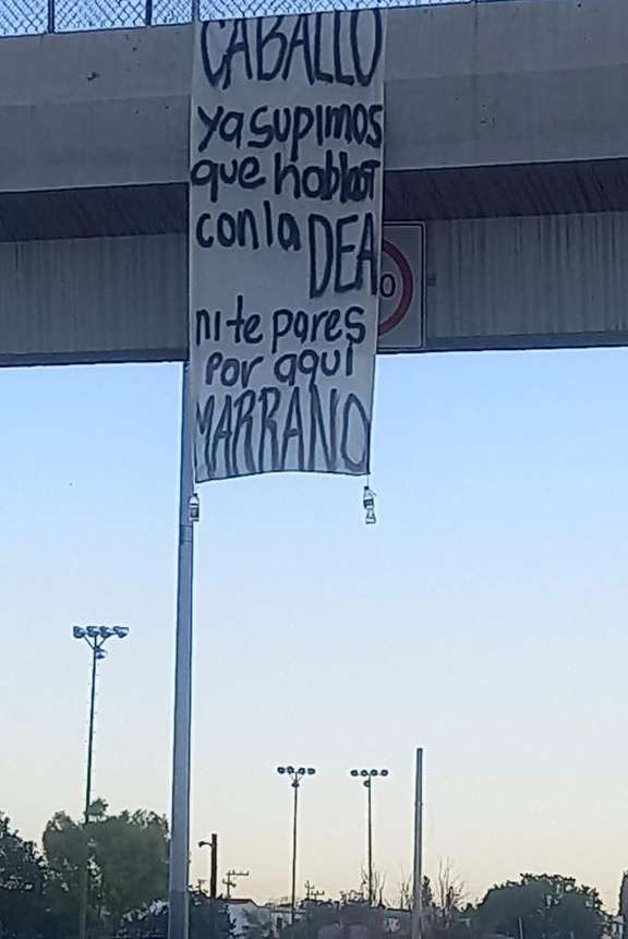 Chihuahua.- Colocaron una narco manta en la cual amenazaron al ex alcalde de Parral, Alfredo "el caballo" Lozoya.