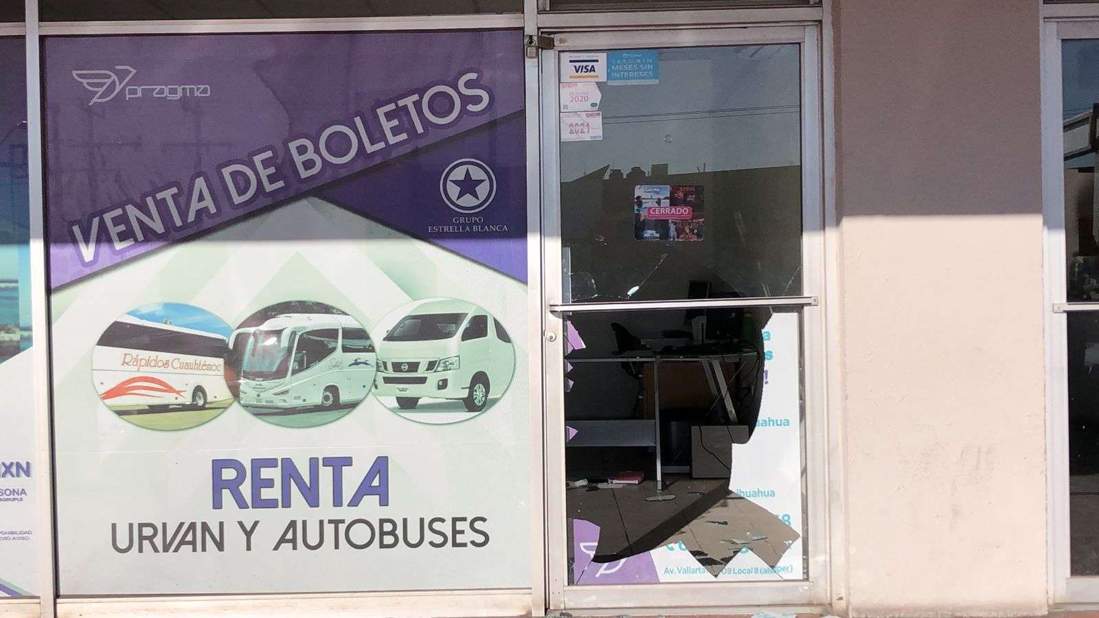 Chihuahua.- Ladrones dieron un cristalazo a un negocio ubicado sobre la avenida Vallarta y Zaragoza.