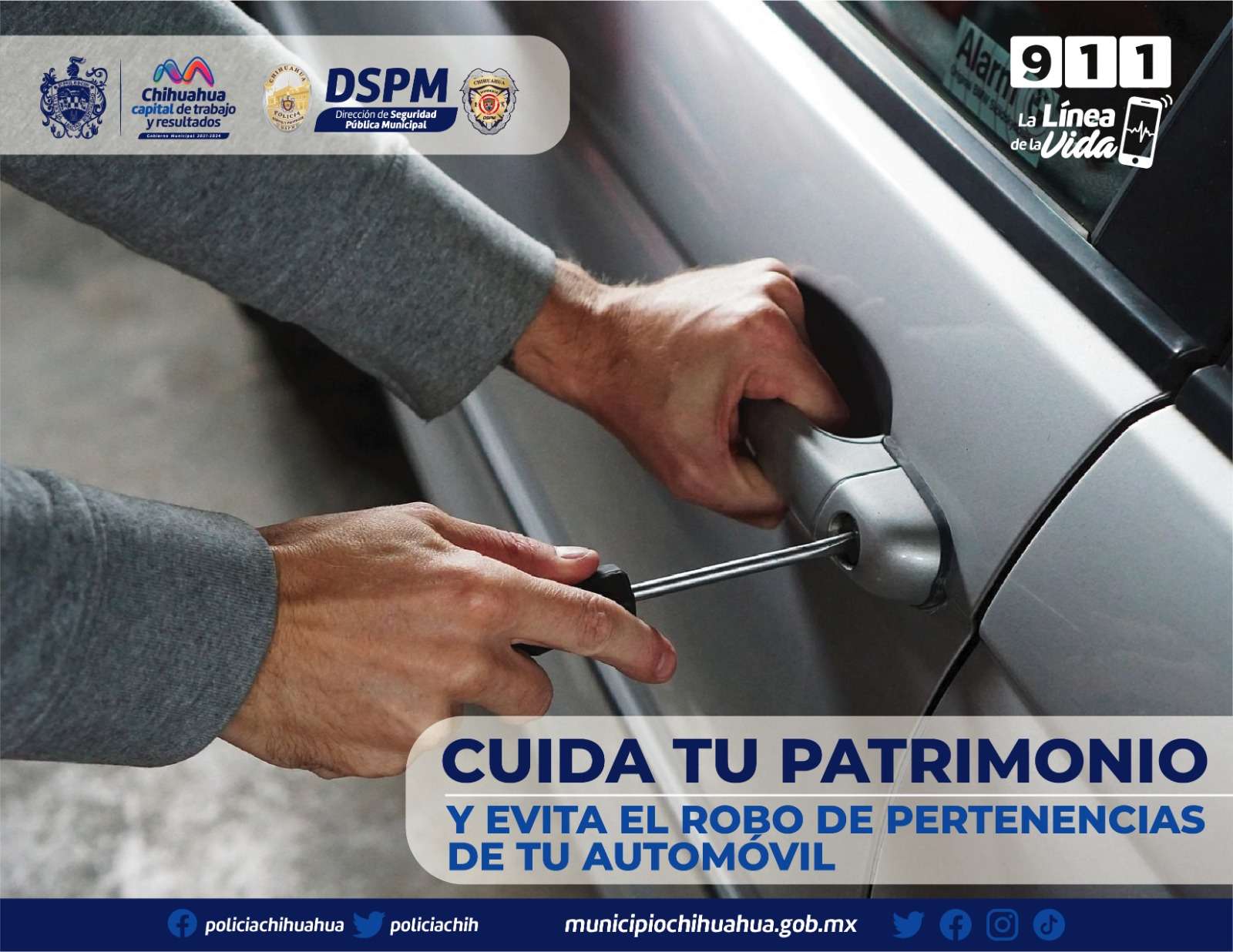 Chihuahua, Chih.- A fin de inhibir el robo de automóviles o de pertenencias del interior de estos, el Gobierno Municipal, a través de la Dirección de Seguridad Pública, emite recomendaciones para evitar que amantes de lo ajeno lleven a cabo estos delitos, pues a pesar de que se mantienen recorridos constantes de prevención y vigilancia por parte de la Policía Preventiva, es importante que cada persona tome medidas de autocuidado.