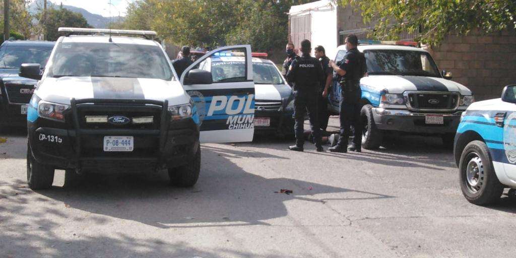 Chihuahua. - Policías municipales llevaron a cabo la detención de un sujeto que intentó desarmar a un agente cuando este procedía a su arresto.