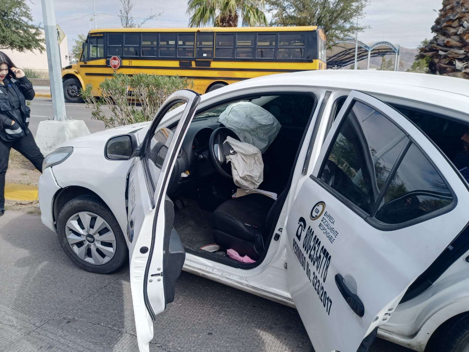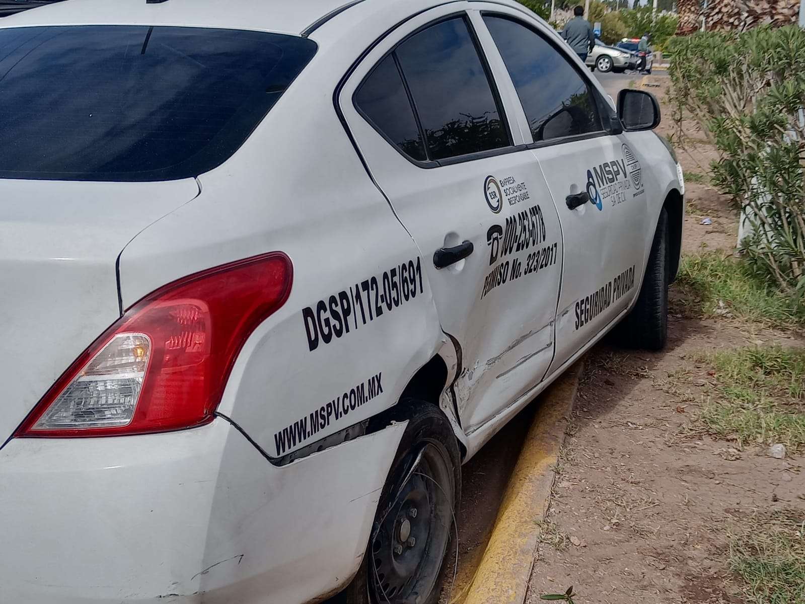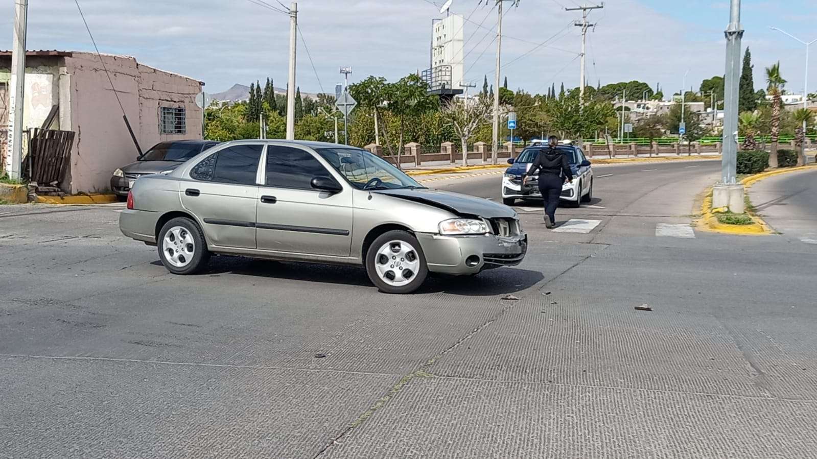 Chihuahua.- Un aparatoso accidente se presentó en las calles J. Eligió Muñóz y calle 10a. de la colonia El Palomar, entre un vehículo Nissan Versa color blanco propiedad de una empresa de seguridad privada y un vehículo Nissan Sentra gris.