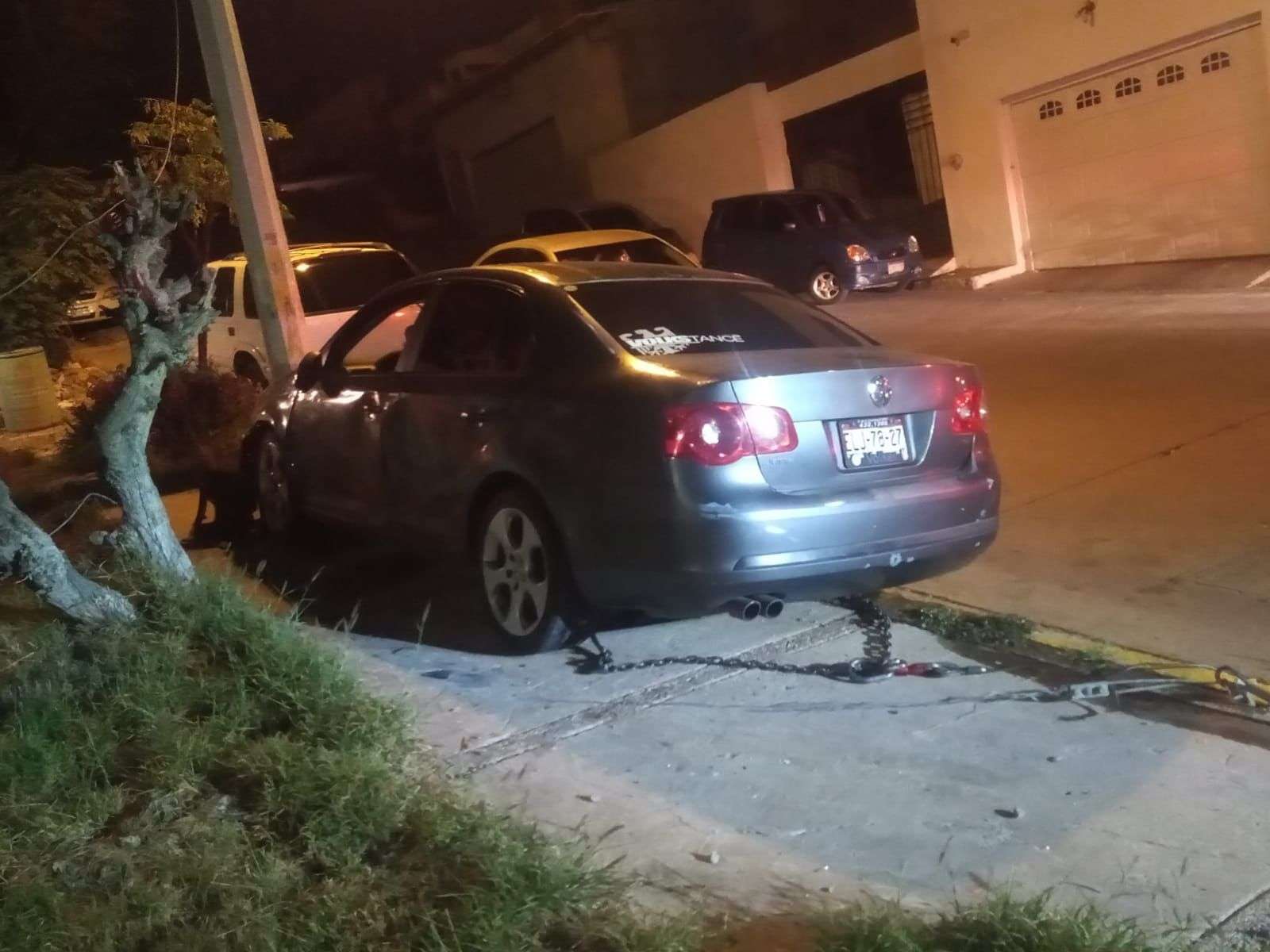 Los hechos ocurrieron en el cruce de las calles avenida Teófilo Borunda y lirios, fue donde El conductor de un automóvil Volkswagen Bora color gris circulaba a exceso de velocidad y bajo los influjos el alcohol, quiso realizar una vuelta en u y perdió el control del volante e impactó con un árbol.